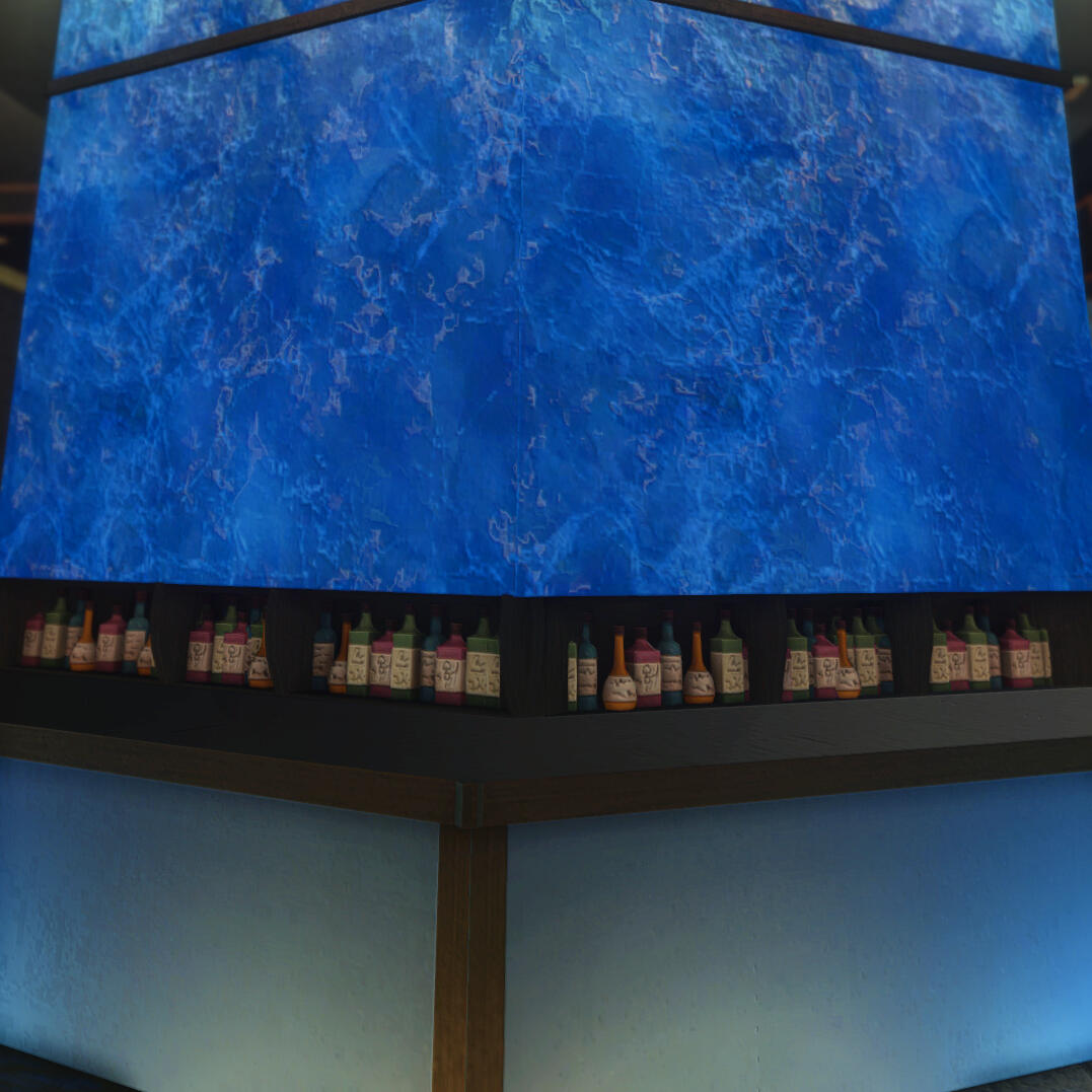 The heart and soul of PurgatoryXIV. This colossal structure spans from floor to ceiling, and encompasses our DJ booth. The base is encircled by our bars and the primary dance floor. Don't be alarmed if it seems to be emitting a glow, that's perfectly normal. Why not throw some aether it's way?